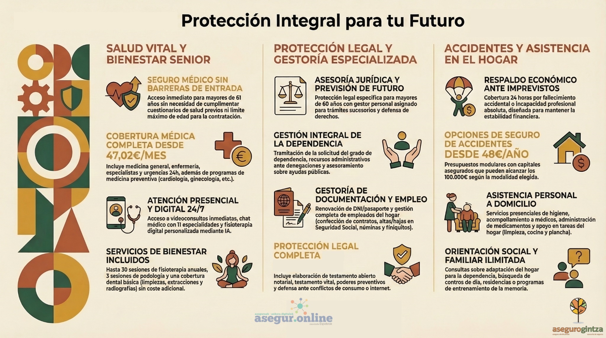 En Asegur.online, entendemos que con los años cambian tus prioridades, pero no tus ganas de vivir con seguridad y bienestar. Por eso trabajamos con distintas compañías para ofrecerte soluciones exclusivas para mayores de 55 años.