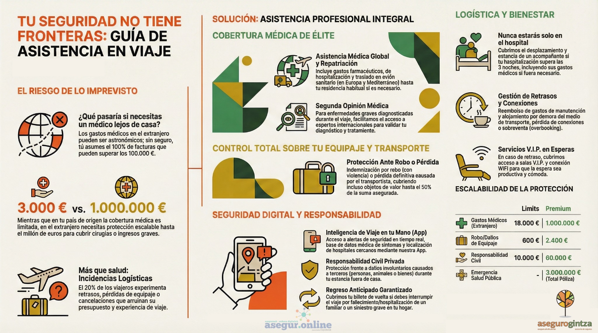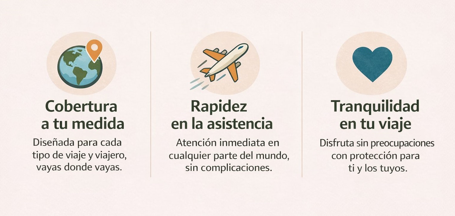 En Asegur.online te damos la tranquilidad de saber que, pase lo que pase, tendrás respaldo inmediato. Nuestro seguro de viaje está pensado para protegerte a ti y a los tuyos, para que nada interrumpa lo realmente importante: disfrutar.